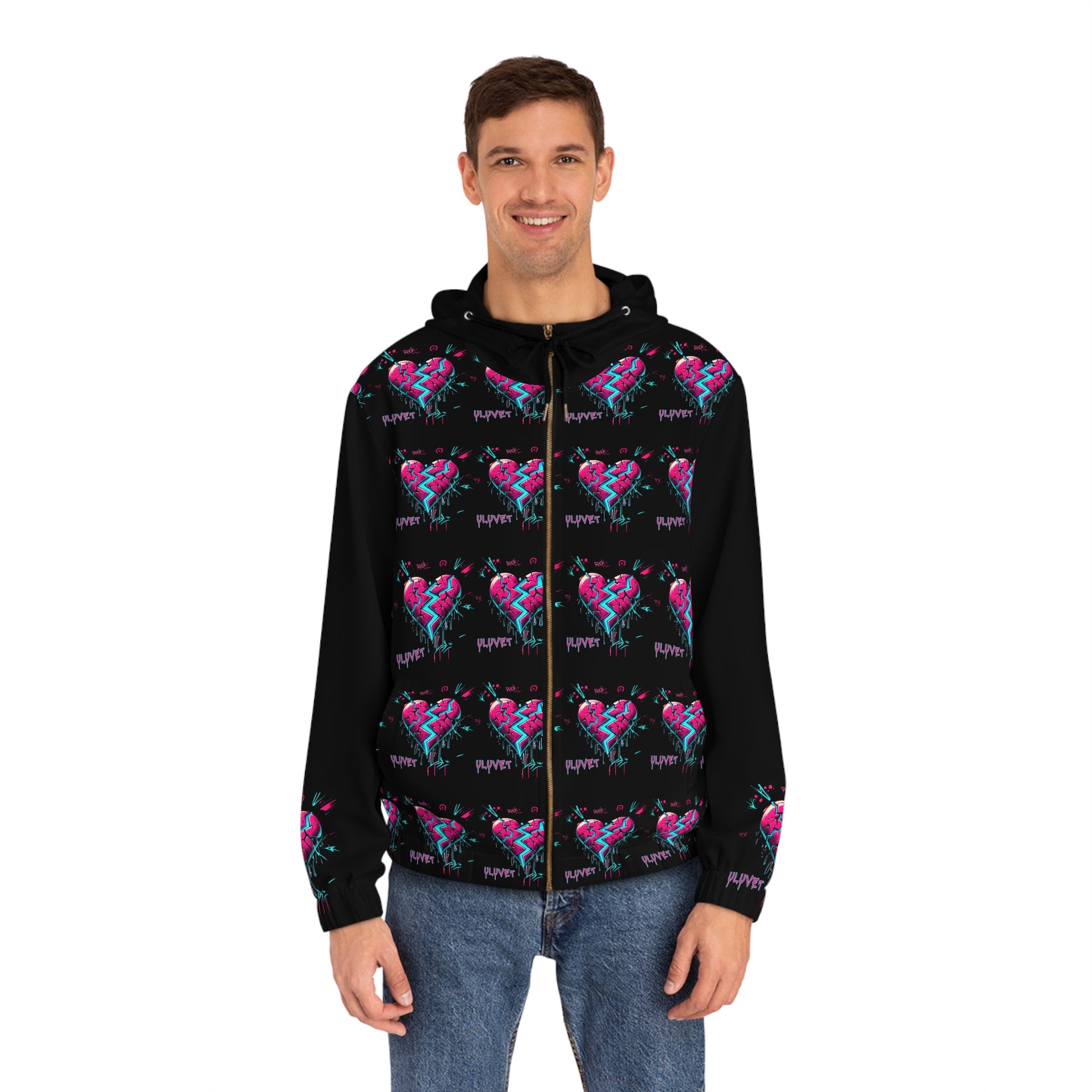 Elevate your casual wardrobe with this eye-catching Men's Full-Zip Hoodie. Featuring a vibrant heart design, this hoodie radiates a feeling of youthful energy and creative expression. Perfect for those who love to stand out, it effortlessly combines comfort and style, making it ideal for everyday wear or lounging with friends. Perfect for young adults and artistic individuals, this hoodie is a fantastic choice for casual outings, music festivals, or cozy nights in. It also makes a thoughtful gift for birthdays, anniversaries, or any celebration that calls for a splash of color and personality.
