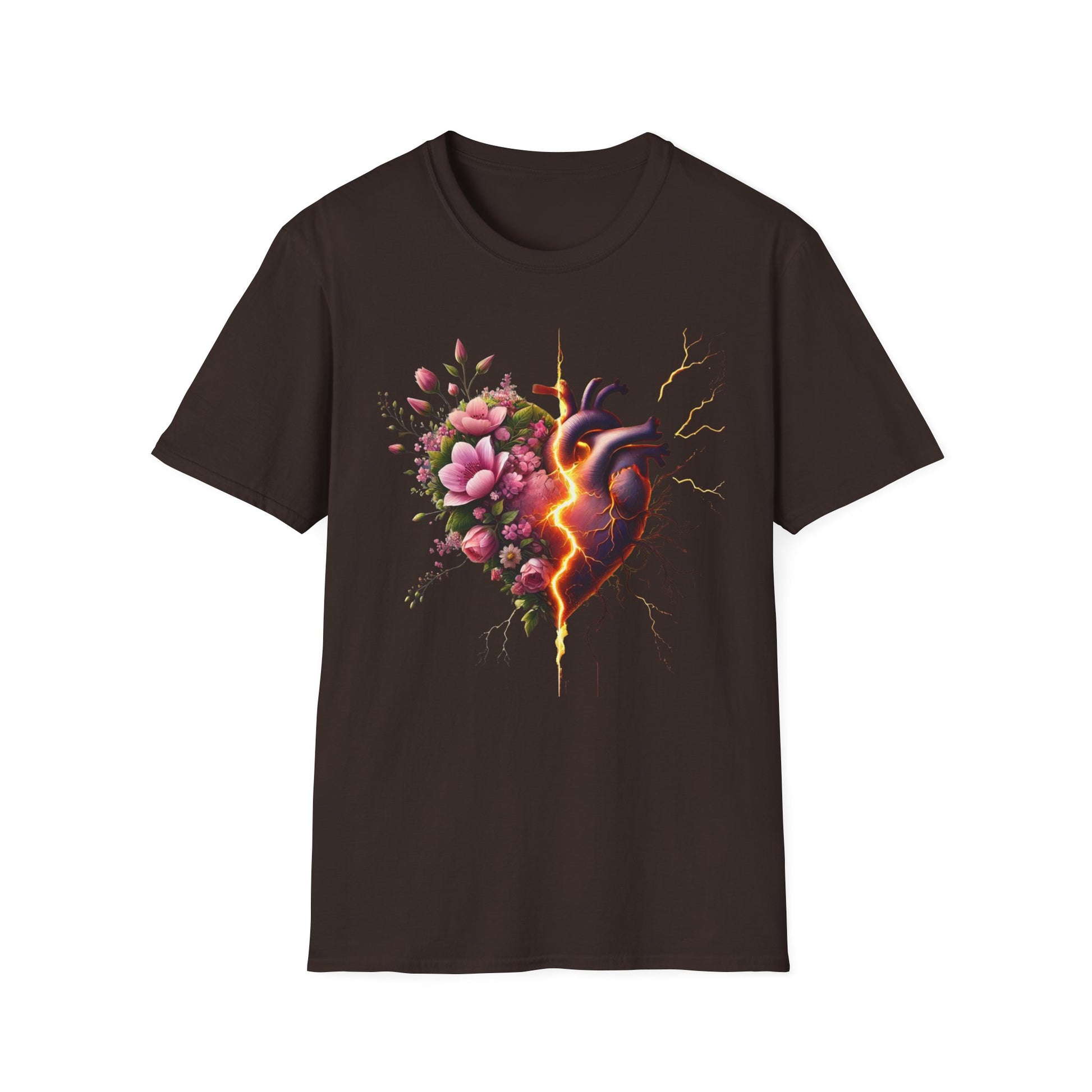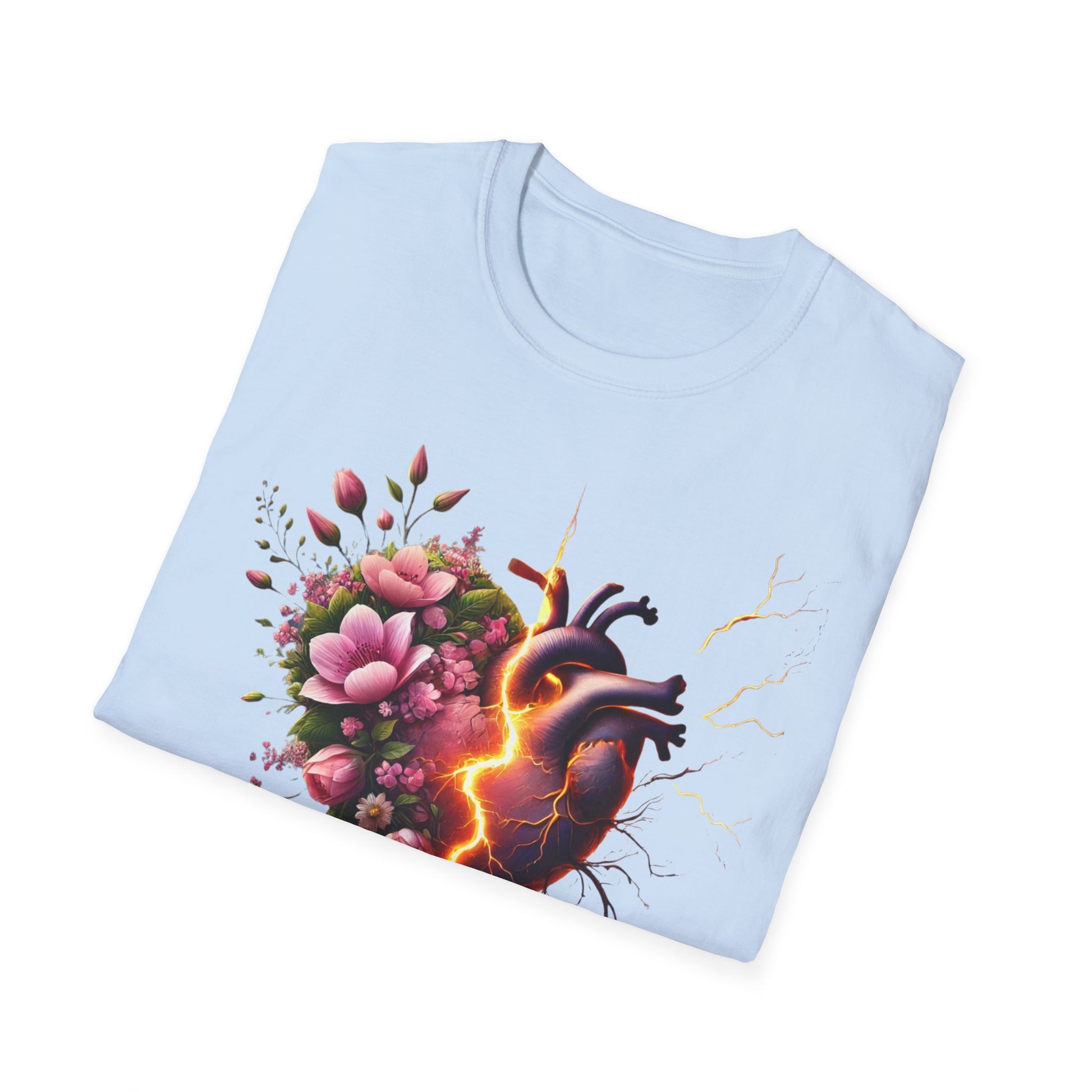 Introducing a beautifully designed Unisex Softstyle T-Shirt that effortlessly combines artistic expression with comfort. This tee features a striking heart design intertwined with vibrant floral elements, symbolizing passion and resilience. Perfect for expressing individuality, it's a great addition to any casual wardrobe. Imagine wearing this on a relaxing weekend gathering, a picnic in the park, or while running errands—its lightweight, breathable fabric ensures you stay comfortable all day long. Ideal for fashion-conscious adults, this T-shirt makes a thoughtful gift for loved ones during celebrations such as anniversaries, Valentine's Day, or any occasion where you want to convey heartfelt sentiments. Embrace your unique style and let your outfit spark conversations!