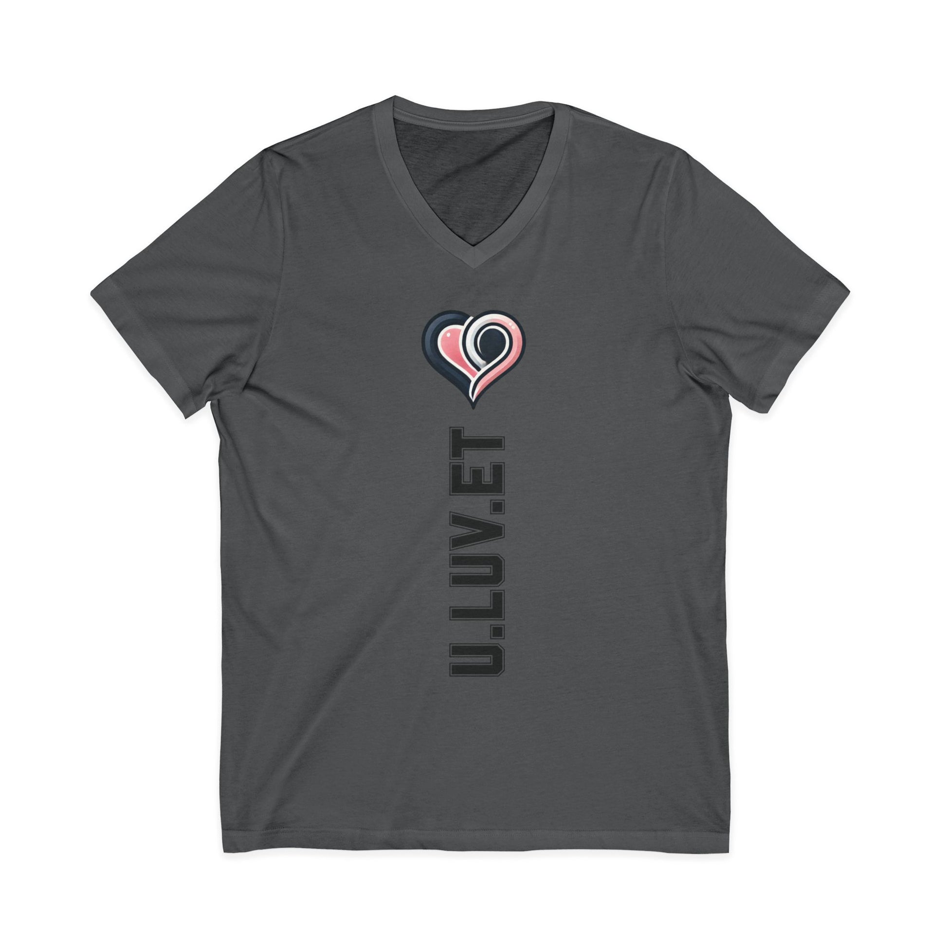 Heartfelt Love V-Neck Tee | Unisex Jersey Short Sleeve Shirt | Perfect for Valentine's, Anniversaries, Casual Wear, Gifts