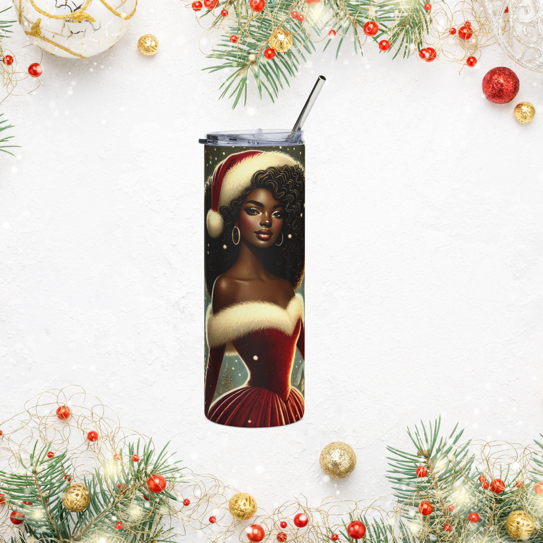 Elevate your drinkware collection with this stunning stainless steel tumbler. Featuring a gorgeous glossy finish, this tumbler combines style and functionality seamlessly. Perfect for sipping hot cocoa by the fire or refreshing iced drinks on a sunny day, it brings a festive, vibrant vibe to your holiday gatherings. Ideal for anyone who loves to celebrate in style, this tumbler makes a great gift for friends and family during Christmas and other festive occasions. It's not just a tumbler; it's a statement piece for those who cherish their moments, big and small.